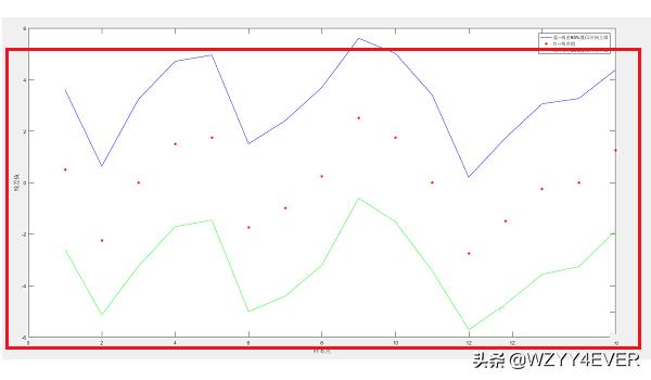 4、第四步我们也可以将残差的置信区间上限,下限绘制出来,如下图所示: