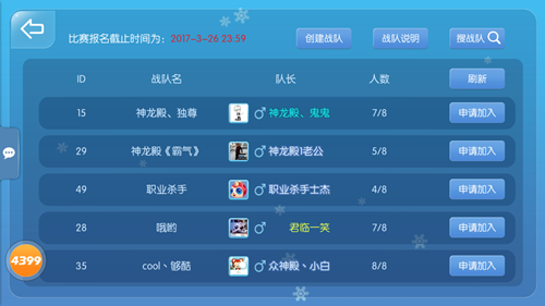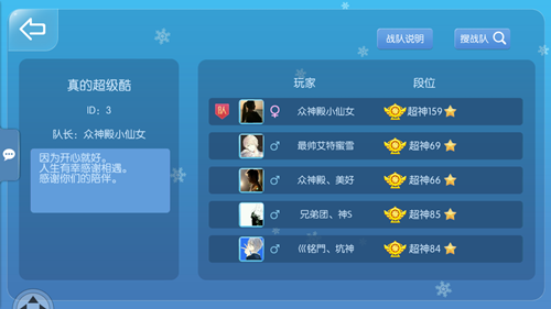 超神以上玩家可用金叶子或气球创建战队成为队长,其他玩家申请加入战队,则需要经过队长的审批,或者输入战队口令后才可加入。