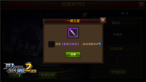 “一键五星”的好处人人皆知,但想要使用这一新增功能,却并非那么简单。在即将到来的《全民奇迹MU》3.0大版本之中,玩家们需要凭借拥有的“要塞召唤券”才能够使用新增的“一键五星”功能,直接获得挑战五星最强BOSS的机会。当然,若是大伙儿手中“要塞召唤券”的数量不足,也可以使用800钻石进行替代,从而使用“一键五星”功能。