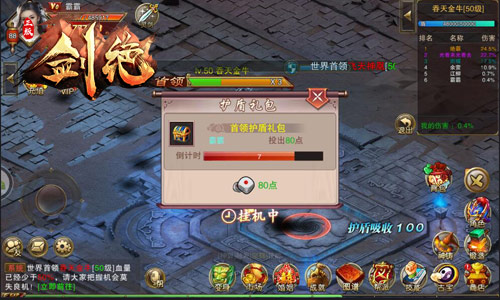 菜鸟砍小怪,高手打BOSS!在冰河游戏《剑绝》中,各位武林高手需要挑战的BOSS便是每天10:00、14:00、16:00、20:00、22:00准时刷新的世界首领!每当世界首领刷新后,玩家便可前去挑战等级低于自己的任意一个BOSS,击杀BOSS不仅可获取各类装备、元宝等奖励,更可获得全服刷屏公告,让所有玩家见证你的实力哦!