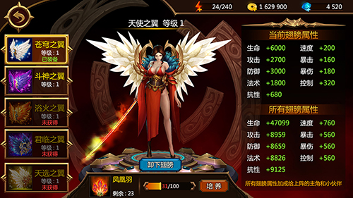 演绎极致华丽,翅膀系统飘然亮相!在全新版本中,将更新翅膀系统,华丽的翅膀正等待在各位英雄将它从深渊之中唤醒!羽翼除了更加华丽和霸气之外,还会有进一步的战力加强!《蛮荒幻想》翅膀系统即将上线,为你的英雄穿戴一套流光溢彩的翅膀吧!