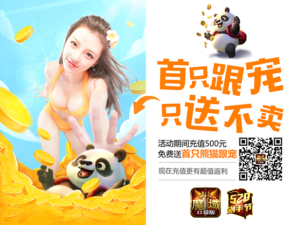 有了绝版装备、坐骑的衬托,秒杀“外贸协会”的妹子再不是难事。但要想俘获所有妹子的芳心,那必须得靠《魔域口袋版》史上最萌跟宠潘潘!这只超萌跟宠也即将登陆《魔域口袋版》,必定让酷爱卖萌的妹子们声声尖叫!而这只超萌跟宠充值即送,配合免单、打折券食用效果更佳!《魔域口袋版》520大促,给你的任性放纵的机会!