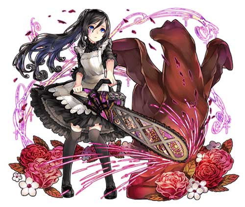 穿着哥特风格小裙子的少女堇,有着白皙肌肤和飘逸长发,独自坐在房间的一角跟人偶一起消磨时光的她,看起来似乎与人偶般融为一体神秘又慵懒。然而当她挥动起手中的电锯时,却是一个标准的武力爆发派,将敌人毫不留情地斩杀殆尽时,终能完好无缺的保全自己。