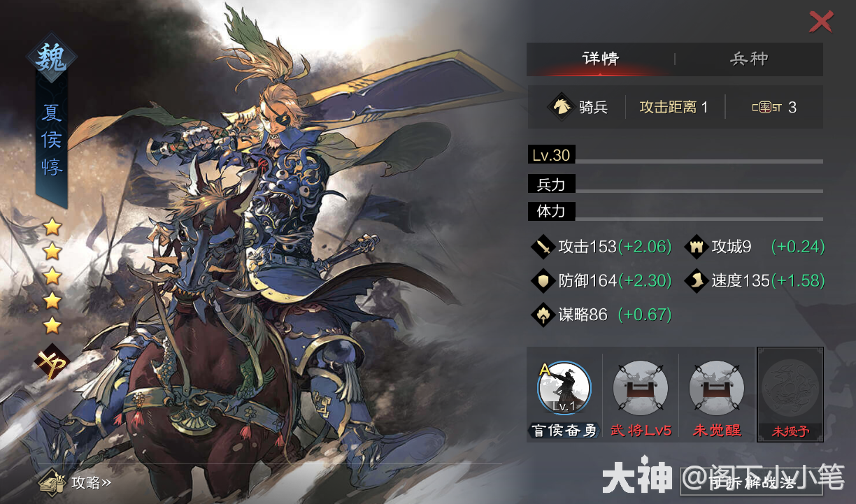 1.夏侯魏骑就是一个高爆发的阵容,所以该阵容需要二个核心输出武将和一个稍弱一点的辅助武将。