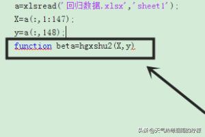 1、对于多元线性回归方程系数的求解,通常使用matlab中自带的函数regress来求。首先需要创建一个函数:function dy_beta=dyxxgxs(X,y); X,y是输入的两个参数,自变量和因变量,如图所示: