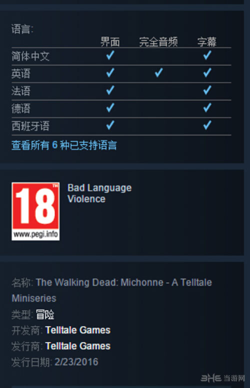 Telltale旗下的《行尸走肉》系列最新作《行尸走肉:米琼恩》现已在Steam国区开启预购。目前本作游戏有9折优惠,售价是43元,包含三个章节。