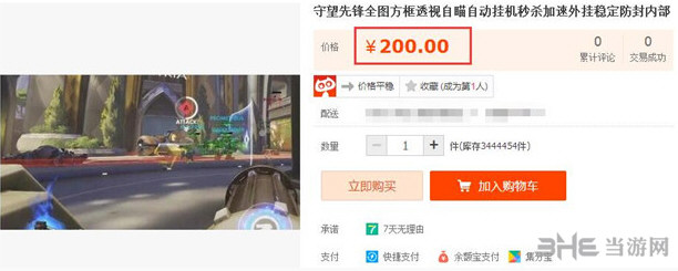 但在中国,这种严重的公告似乎抵挡不住某宝卖家们赚钱的热情。据悉,在某宝上存在着大量《守望先锋》外挂辅助的贩卖,价格基本为200元月卡,400元季卡,600元终身卡。超过了游戏本身的价格。