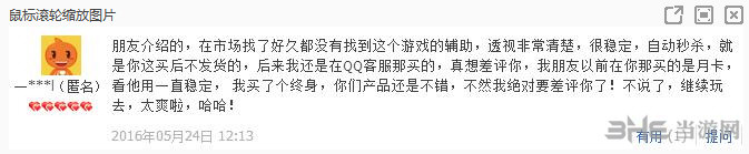 有网友也评论到:透视非常清楚,很稳定,自动击杀。